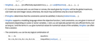 - NArgMax always attempts to find a global maximum of f subject to the constraints given.