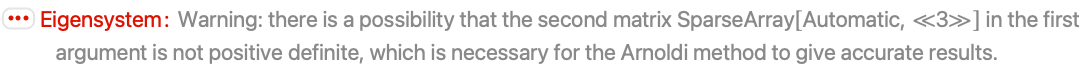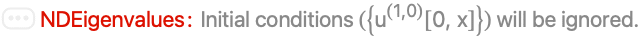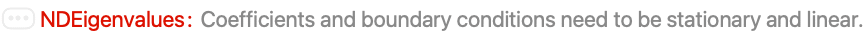 =…, …. Only the functions u, v, … are returned. » - NDEigenvalues accepts a Method option that may be used to control different stages of the solution. With Method->{s1->m1,s2->m2,…}, stage si is handled by method mi. When stages are not given explicitly, NDEigenvalues tries to automatically determine what stage to apply a given method to.