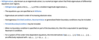 - NDEigenvalues, also known as an eigenmode solver, is a numerical eigen solver that finds eigenvalues of differential equations over regions.