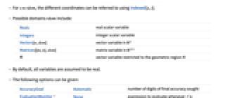 Reals real scalar variable Integers integer scalar variable Vectors[n,dom] vector variable in