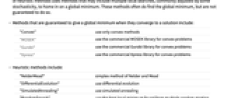- Methods that are guaranteed to give a global minimum when they converge to a solution include: