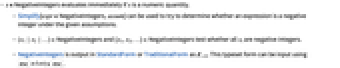 - Simplify[expr∈NegativeIntegers,assum] can be used to try to determine whether an expression is a negative integer under the given assumptions.