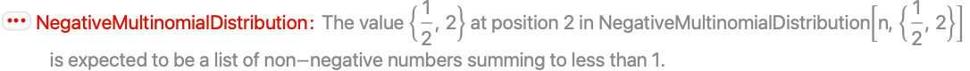 NegativeMultinomialDistribution is not defined when n is not a positive integer:
