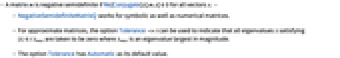 - NegativeSemidefiniteMatrixQ works for symbolic as well as numerical matrices.