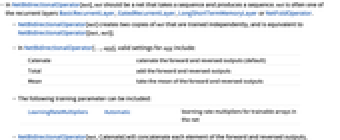 Catenate catenate the forward and reversed outputs (default) Total add the forward and reversed outputs Mean take the mean of the forward and reversed outputs - The following training parameter can be included: