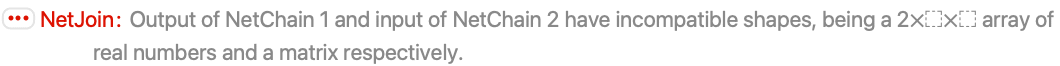 - NetJoin[net1,net2,…,"port"->spec,…] can be used to specify types for the input and/or output of the resulting NetChain or NetGraph, using the normal type specifications allowed by NetGraph. The new port specifications will replace any existing NetEncoder, NetDecoder or type.