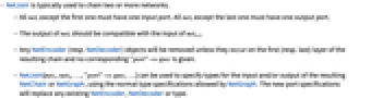 - Any NetEncoder (resp. NetDecoder) objects will be removed unless they occur on the first (resp. last) layer of the resulting chain and no corresponding "port"->spec is given.