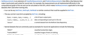 - NetMeasurements is an extension of ClassifierMeasurements and PredictorMeasurements that offers a few features that make it particularly well suited for neural nets. For example, the measurements are all implemented efficiently in the computational graph of the net and can be calculated on the GPU, which makes NetMeasurements applicable to the large datasets often used when training nets.