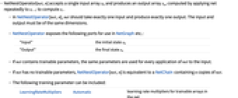 - If net has no trainable parameters, NetNestOperator[net,n] is equivalent to a NetChain containing n copies of net.