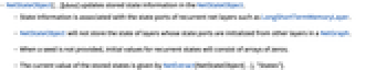 - State information is associated with the state ports of recurrent net layers such as LongShortTermMemoryLayer.