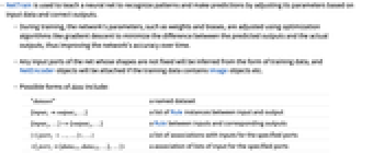 NetTrainResultsObject NetModel NetInitialize NetChain NetGraph Classify Predict NMinimize NetMeasurements NetGANOperator Information