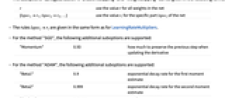 "Momentum" 0.93 how much to preserve the previous step when updating the derivative - For the method "ADAM", the following additional suboptions are supported:
