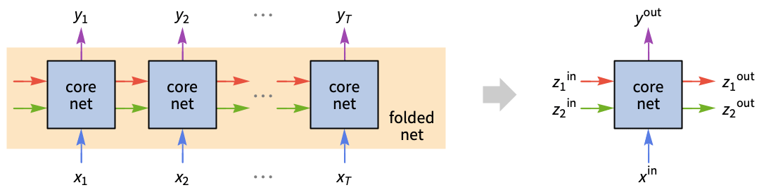 - A folded net is a net iterating over a sequence unidirectionally by repeating the same operation, such as recurrent nets and unidirectional transformers.