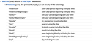 - In NextDate[gran], the granularity type gran can be any of the following: