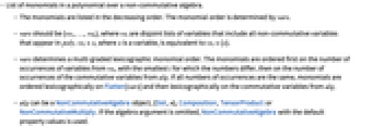 - List of monomials in a polynomial over a non-commutative algebra.