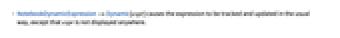 - NotebookDynamicExpression->Dynamic[expr] causes the expression to be tracked and updated in the usual way, except that expr is not displayed anywhere.