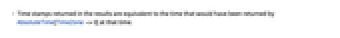 - Time stamps returned in the results are equivalent to the time that would have been returned by AbsoluteTime[TimeZone->0] at that time.