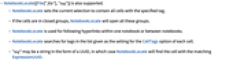 - NotebookLocate sets the current selection to contain all cells with the specified tag.