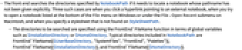 - The front end searches the directories specified by NotebookPath if it needs to locate a notebook whose pathname has not been given explicitly. Three such cases are when you click a hyperlink pointing to an external notebook, when you try to open a notebook listed at the bottom of the File menu on Windows or under the File ▶ Open Recent submenu on Macintosh, and when you specify a stylesheet that is not found on StyleSheetPath.