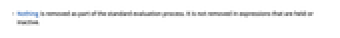 - Nothing is removed as part of the standard evaluation process. It is not removed in expressions that are held or inactive.
