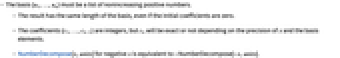 - The result has the same length of the basis, even if the initial coefficients are zero.