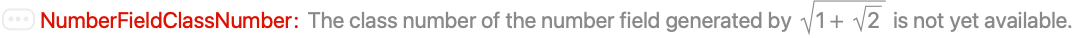 Wolfram Research (2007), NumberFieldClassNumber, Wolfram Language function, https://reference.wolfram.com/language/ref/NumberFieldClassNumber.html.