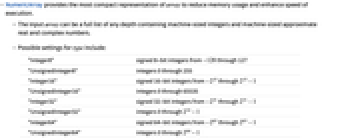 - The input array can be a full list of any depth containing machine‐sized integers and machine‐sized approximate real and complex numbers.