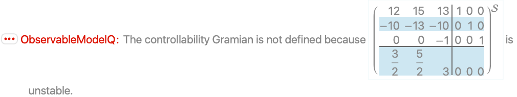 is distinguishable from that of another state in its neighborhood in finite time. - The system sys can be a standard or descriptor StateSpaceModel or AffineStateSpaceModel.