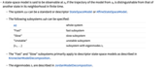 - The "Fast" and "Slow" subsystems primarily apply to descriptor state-space models as described in KroneckerModelDecomposition.