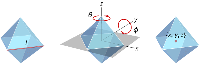 represents an octahedron rotated by an angle θ with respect to the z axis and angle ϕ with respect to the y axis.