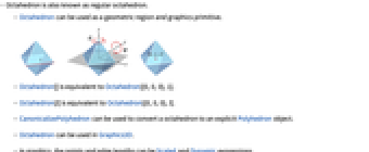 - CanonicalizePolyhedron can be used to convert a octahedron to an explicit Polyhedron object.