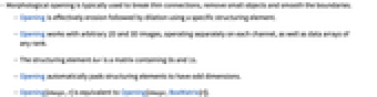- Opening is effectively erosion followed by dilation using a specific structuring element.