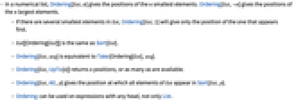 - Ordering[list,seq] is equivalent to Take[Ordering[list],seq].