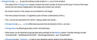 as an inner product. - The output from Orthogonalize always contains the same number of vectors as the input. If some of the input vectors are not linearly independent, the output will contain zero vectors.