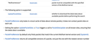 UpdatePacletSites Automatic whether to download the latest data about available paclets before performing the search - PacletFindRemote only looks in a local cache of data about remote paclets; it does not contact paclet sites on each call.
