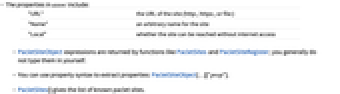- You can use property syntax to extract properties: PacletSiteObject[…]["prop"].