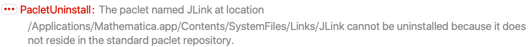 - PacletUninstall will not uninstall paclets that are part of the Wolfram System installation, only paclets that have been downloaded and installed into the local paclet repository (which can include paclets that are updates to ones in the Wolfram System installation).