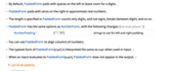 - PaddedForm has the same options as NumberForm, with the following changes: [List of all options]