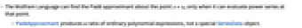 - The Wolfram Language can find the Padé approximant about the point x=x0 only when it can evaluate power series at that point.