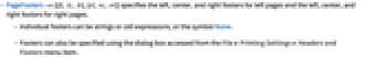 - Individual footers can be strings or cell expressions, or the symbol None.
