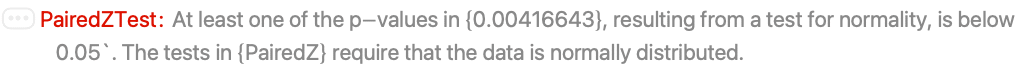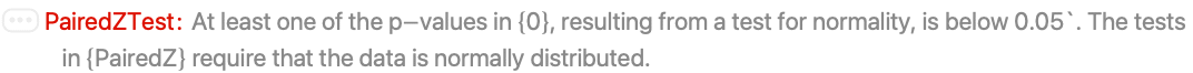 - PairedZTest assumes that the data is normally distributed and that the variance is known and not estimated from the data.