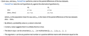 - PairedZTest[dspec,σ,μ0,"HypothesisTestData"] returns a HypothesisTestData object htd that can be used to extract additional test results and properties using the form htd["property"].