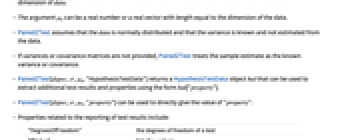 - If variances or covariance matrices are not provided, PairedZTest treats the sample estimate as the known variance or covariance.