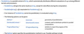 - Parallelize[Array[f,n]] is equivalent to ParallelArray[f,n].