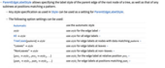 - Any style specification as used in Style can be used as a setting for ParentEdgeLabelStyle.