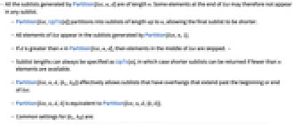 - Sublist lengths can always be specified as UpTo[n], in which case shorter sublists can be returned if fewer than n elements are available.