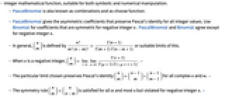 . » - For integer arguments, PascalBinomial automatically evaluates to exact values.