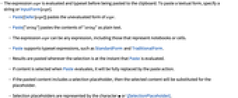 AutoScroll True whether to scroll the notebook to the pasted material PlaceholderReplace True whether to replace a selection placeholder with the selected contents