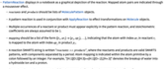 - PatternReaction displays in a notebook as a graphical depiction of the reaction. Mapped atom pairs are indicated through a mouseover effect.