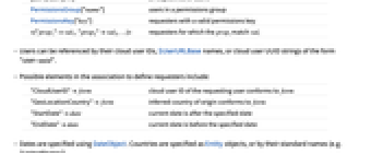 "CloudUserID"form cloud user ID of the requesting user conforms to form "GeoLocationCountry"form inferred country of origin conforms to form "StartDate"date current date is after the specified date "EndDate"date current date is before the specified date - Dates are specified using DateObject. Countries are specified as Entity objects, or by their standard names (e.g. "UnitedStates").